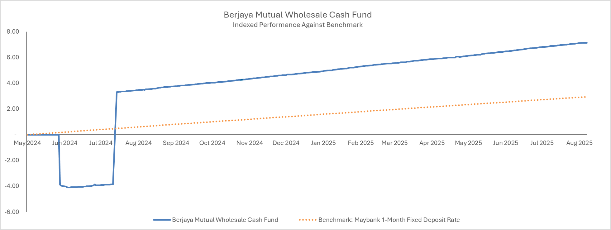 Berjaya Mutual Wholesale Cash Fund | 0.23 | 0.86 | 1.68 | 3.48 | 7.13 | |||