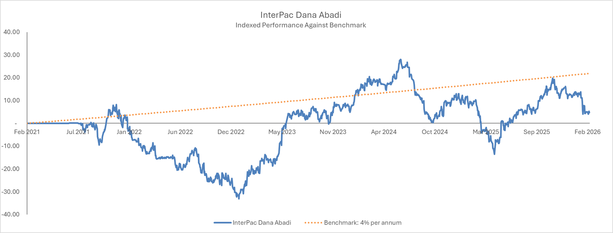 | InterPac Dana Safi | -4.67 | -6.00 | -4.30 | -0.25 | -10.42 | -37.05 | 54.21 | 139.40 |